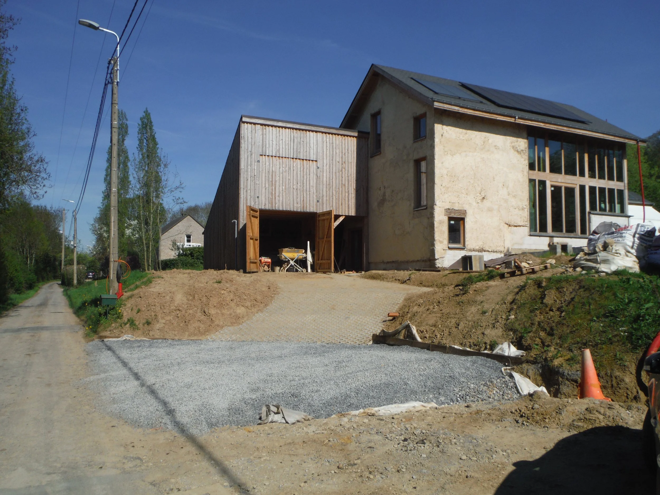 Quelques chantiers réalisés: Enduits à l'argile sur panneaux de roseaux Maison en terre du terrain Maison en paille Une cage d'escalier courbe.... Travail en cours... Quelques chantiers aléatoires Pisé Sols en terre